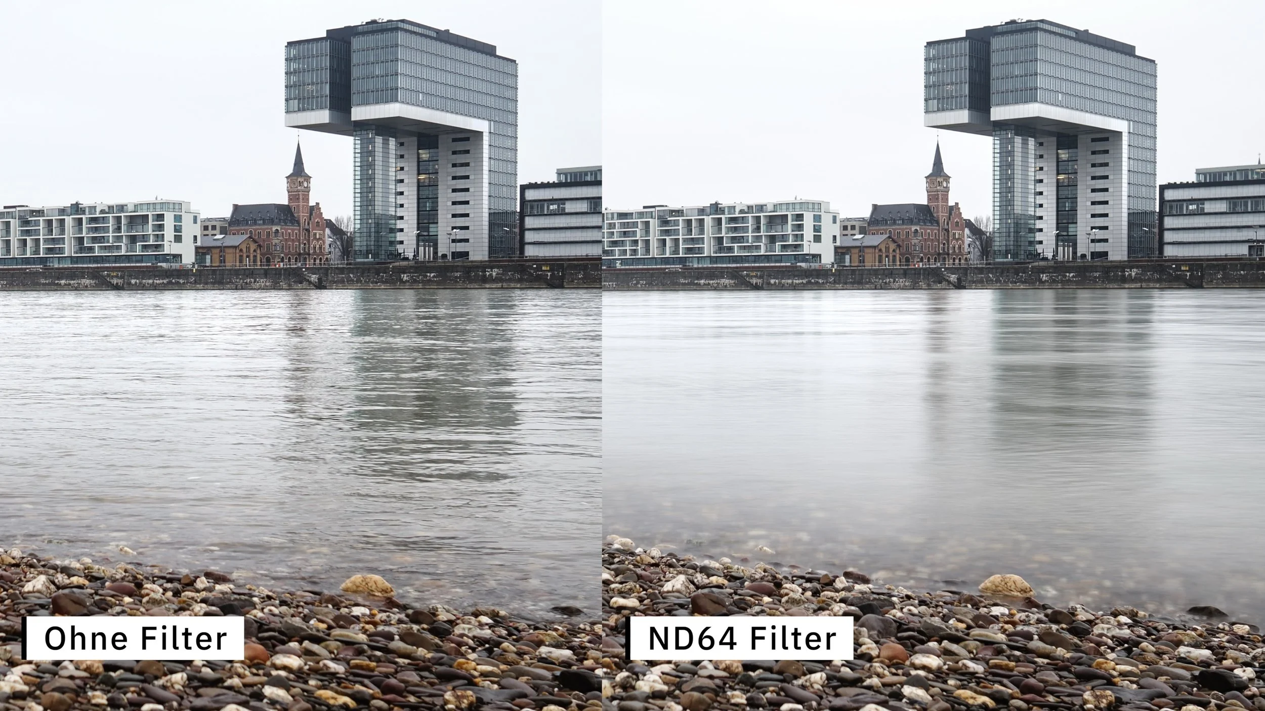 • ND-Filter-Funktion: Mit bis zu ND64 können Sie lange Belichtungszeiten simulieren, ohne teure ND-Filter extra zu kaufen.
